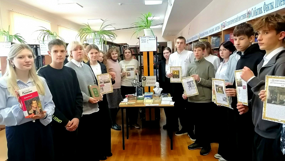 К этому дню специалисты библиотеки подготовили выставку-посвящение «От выстрела до бессмертия», у которой провели беседу с учащимися 9 и 10 классов СОШ № 2.