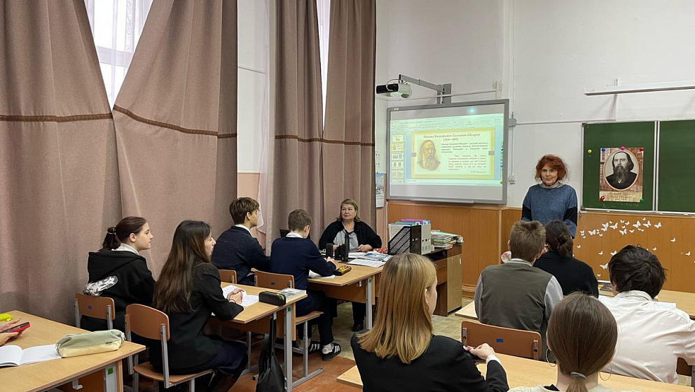 Специалист библиотеки Базилевская Т.Ю., рассказывая старшеклассникам об основных направлениях его творчества, акцентировала внимание на том, что сатира Щедрина глубоко национальна. Правдивый и суровый автор, он был преемником и продолжателем дела Пушкина, Грибоедова и Гоголя.