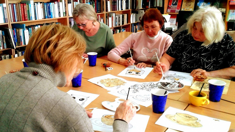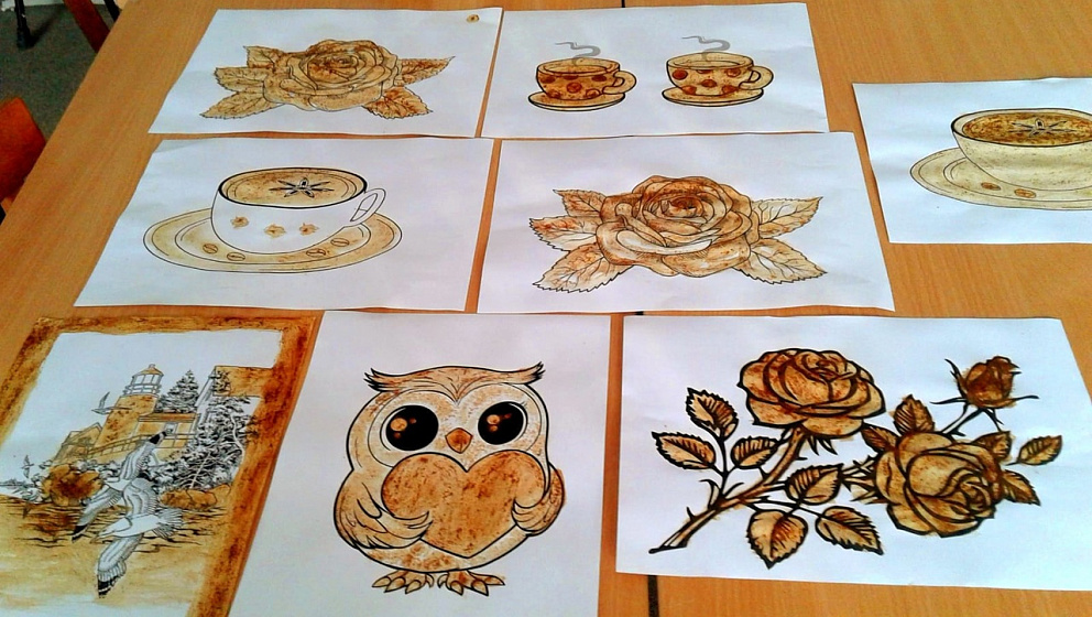 Гостям вечера было предложено поучаствовать в мастер-классе «Кофе-арт», который заинтересовал всех и вовлек в творческий процесс. А рисунки получились теплыми, издающими тонкий аромат кофе.