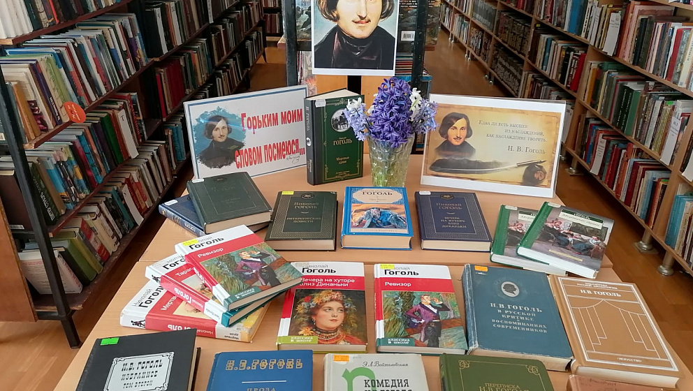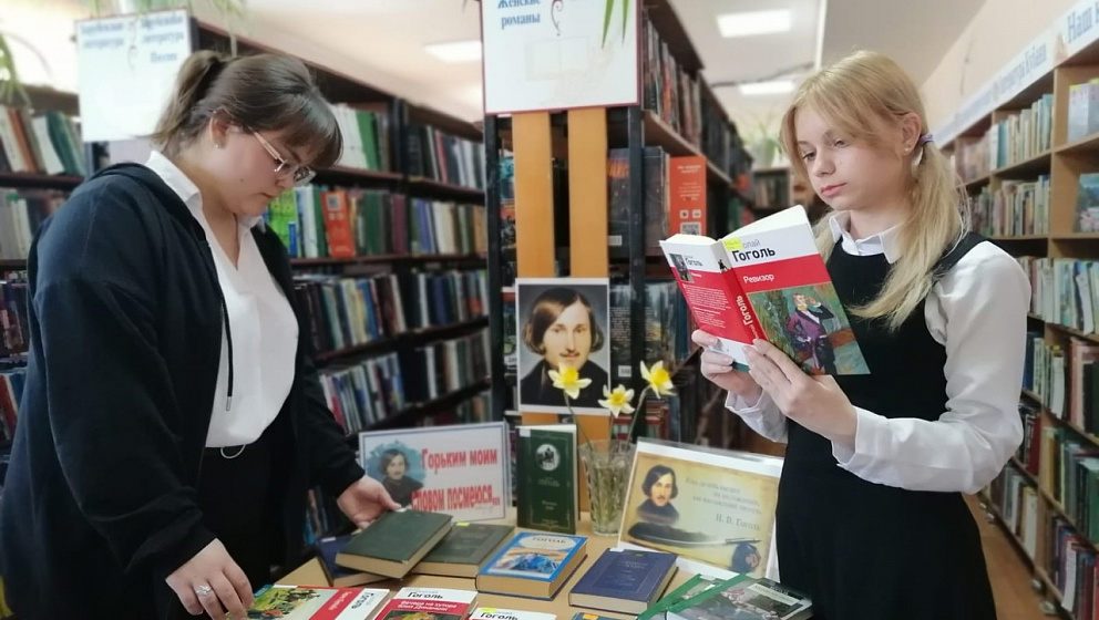 Хорошим пособием для учащихся станут материалы, содержащие разборы главных произведений Гоголя – комедии «Ревизор» и поэмы «Мертвые души». Читателей, заинтересовавшихся выставкой, библиотекари знакомят с биографией и творчеством писателя, проводят обзор представленной литературы и вручают памятки и буклеты, выпущенные к памятной дате.