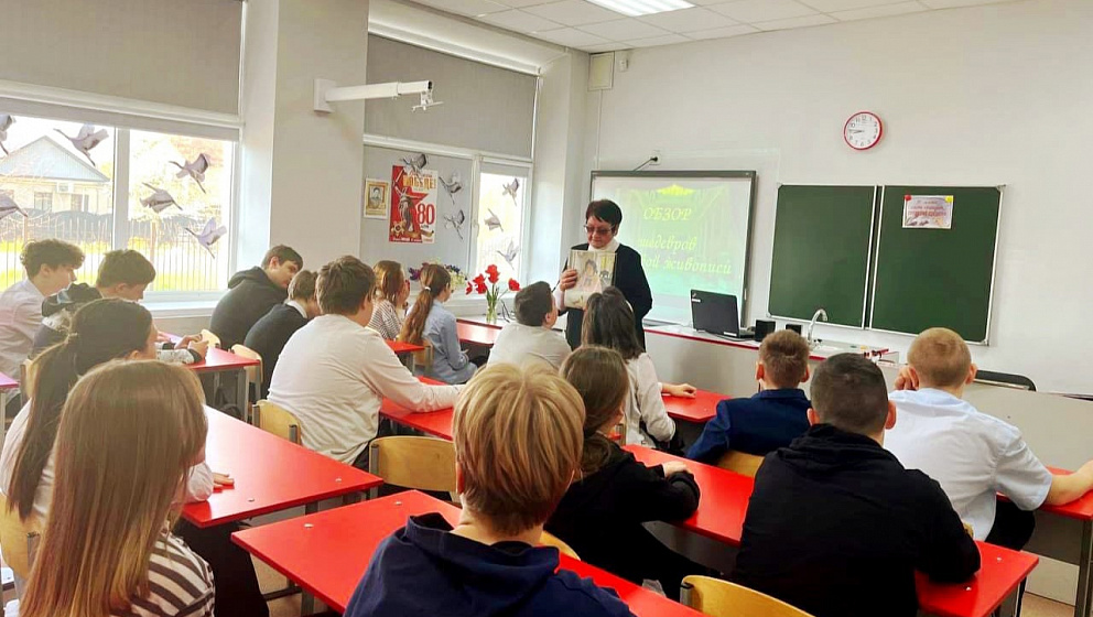 Для учащихся СОШ №13 прошло мероприятие «И мягко кисть скользит, соединяя времена», подготовленной центральной районной библиотекой.