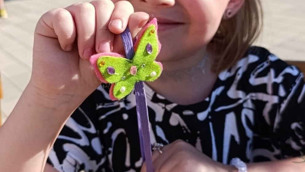 Из фетра, страз и цветной резиновой ленты участники с увлечением создавали свои уникальные закладки в форме бабочек и воздушных шаров.
