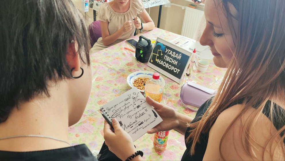 Организаторы Моргун Диана и Рыжкова Диана предложили ребятам разделиться на две команды и погрузиться в захватывающую игру, где нужно было угадать современные хиты, запущенные в обратном порядке.
