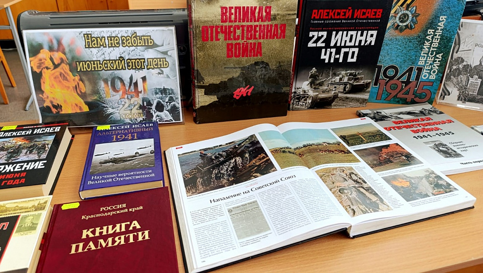 Ко Дню памяти и скорби в читальном зале Центральной районной библиотеки оформлена тематическая книжная выставка «Нам не забыть июньский этот день».