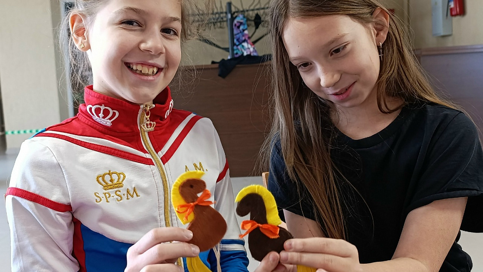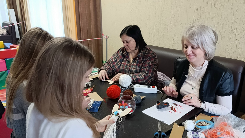 Ребята с энтузиазмом погрузились в работу: из фетра, ниток и бусин рождались забавные лошадки, нарядные ёлочки и рождественские ангелы-хранители. Юные участники активно освоили технику скрапбукинг, создавая новогодние книжные закладки.