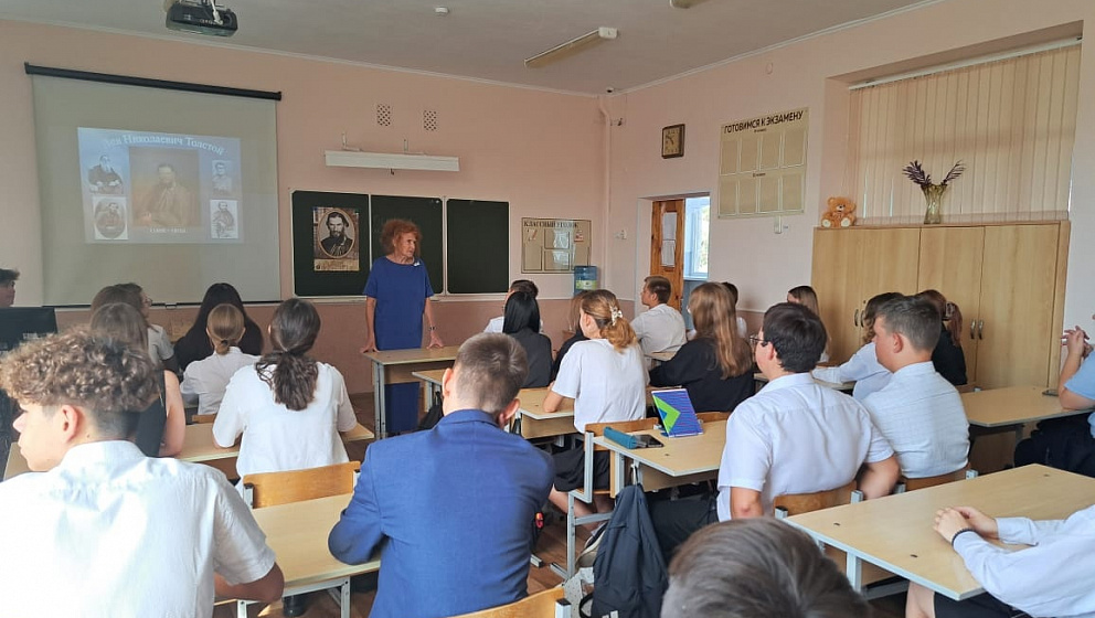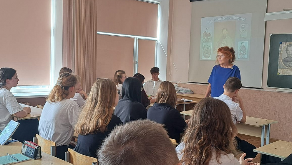 12 сентября в рамках акции к 196-летию со дня рождения великого русского писателя Л.Н.Толстого для учащихся 10-А и 10-Б классов СОШ № 13 был проведен литературный час «Он писал историю народа».