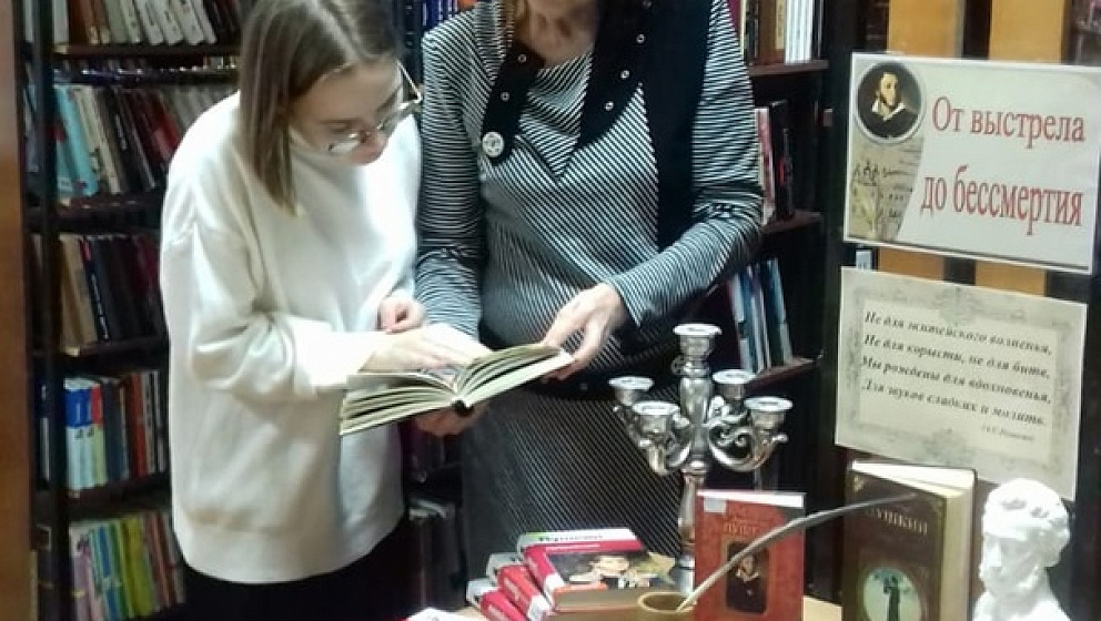 Библиотекари рекомендовали читателям книгу С.Абрамовича «Пушкин. Последний год», куда включены практически все известные мемуарные, документальные, эпистолярные свидетельства о Пушкине в последний год его жизни. Книга Е. Высочиной «Образ, бережно хранимый» посвящена сложной и интересной почти двухвековой истории восприятия Пушкина в русской культуре от современников до наших дней.