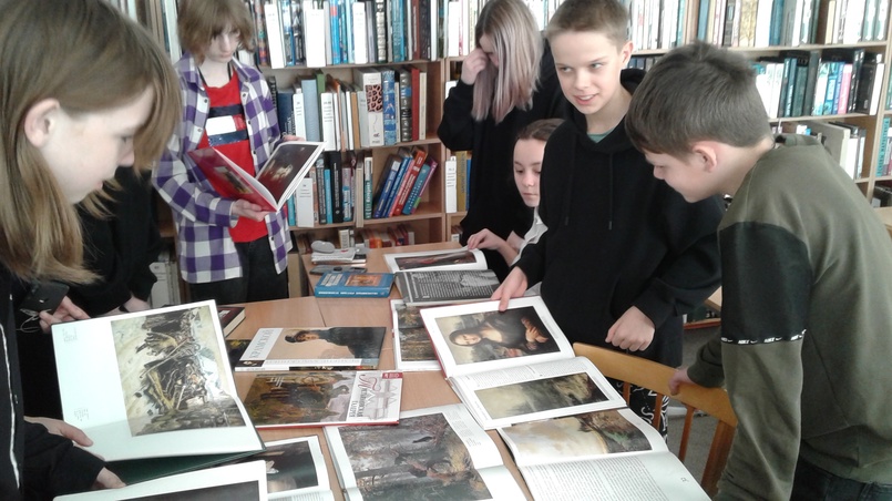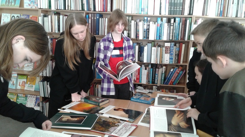 Ребята с удовольствием рассматривали репродукции наиболее известных картин выдающихся мастеров русской живописи из собрания Третьяковской галереи: К. Брюллова, В. Перова и И. Шишкина, И. Репина, В. Васнецова, А. Саврасова, С Герасимова, А.Рублева и многих других художников, посмотрели небольшие видеосюжеты о знаменитых картинах и о самих коллекционерах.