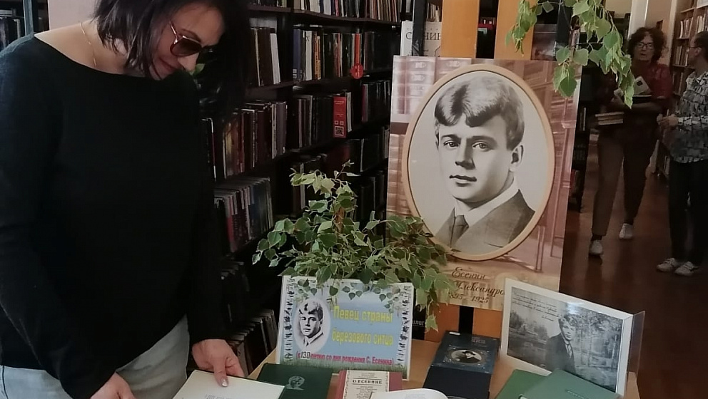 Ко дню рождения поэта, с 3 октября на абонементе представлена красочно оформленная выставка-диалог «Певец страны березового ситца». Россыпь книг украшают ветви березы – одного из любимых символов есенинской лирики.
