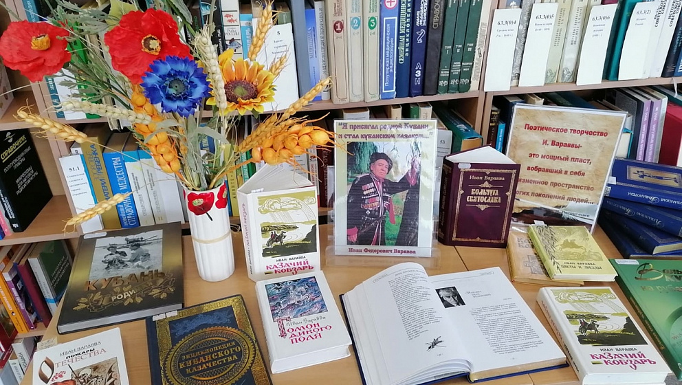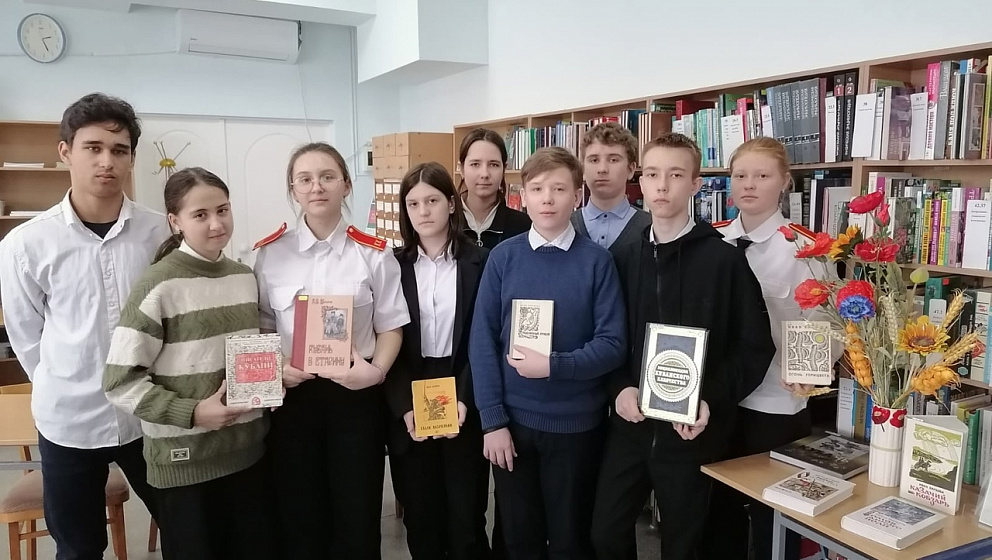 К 100-летию писателя в библиотеке открылась выставка его книг, у которой специалисты библиотеки провели со школьниками беседу о наследии кубанского кобзаря.