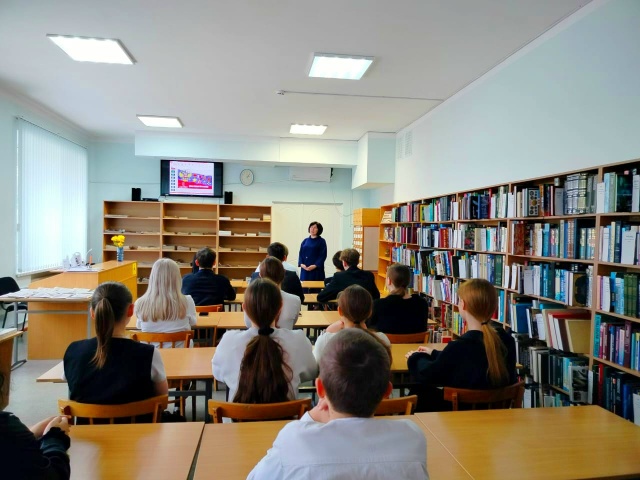 Ко Дню Героев Отечества в читальном зале библиотеки для учащихся 10-го класса СОШ № 18 прошёл урок мужества «Помним о вас…».