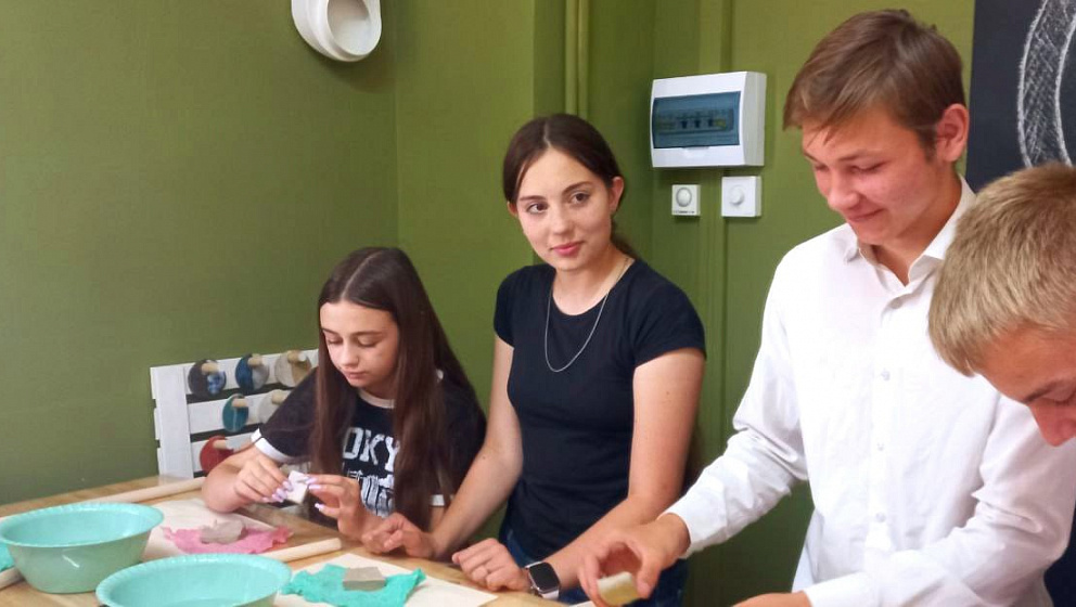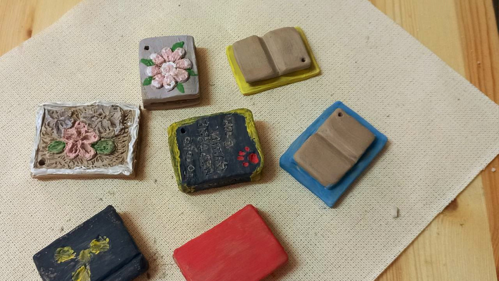 Мастер Анна Мелькова рассказала ребятам о профессии гончара, познакомила историей керамики, с гончарным оборудованием и глиняными изделиями. Какой-то час работы - и вот кусок глины превратился в красивый брелок в виде книги.
