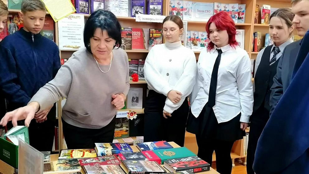Также с молодежью обсуждались представленные на выставке книги о А. Суворове, М. Кутузове, маршалах Советского Союза Г. К. Жукове, Л. А. Говорове, А. В. Василевском и о других прославленных героях.
