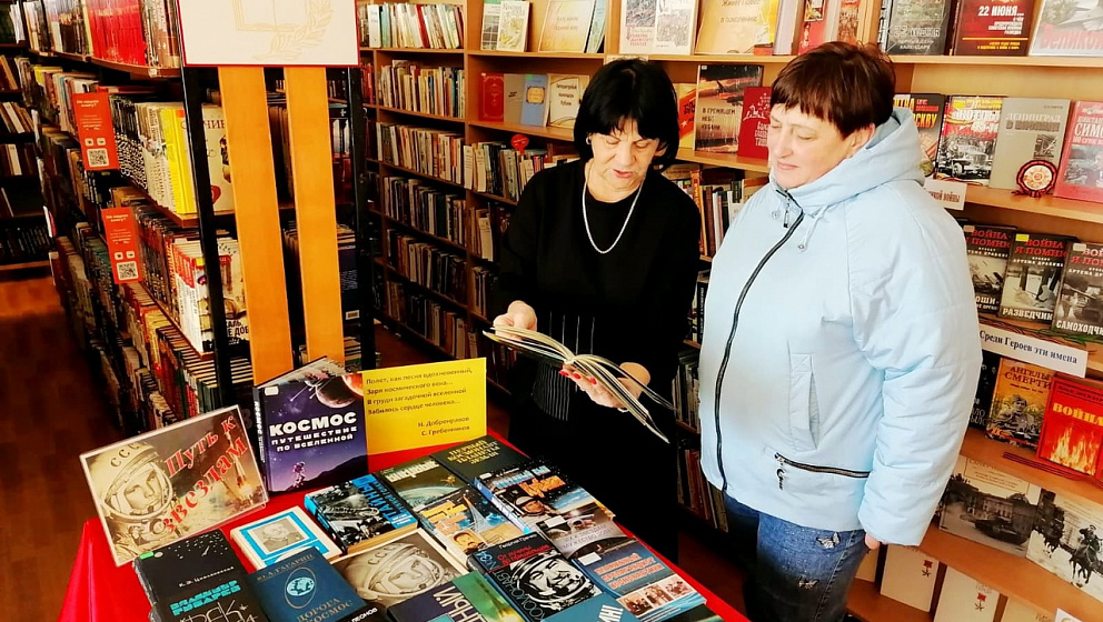 Библиотекари знакомят читателей с документальной и научно-познавательной литературой из фондов библиотеки, посвященной теме исследования космического пространства.
