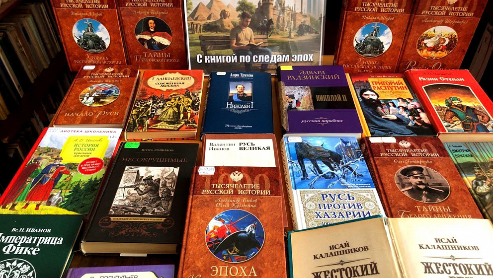 В пункте выдачи 4 микрорайона оформлена выставка книг русских и зарубежных авторов, посвященная историческим событиям и персонажам, которая предлагает определенный взгляд на прошлое: