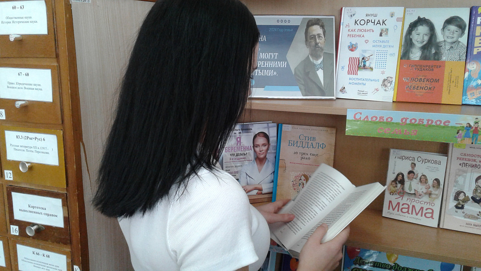 Книжная выставка привлекает внимание как молодёжи, так и семейных пар. Большой выбор книг о воспитании детей с советами и рекомендациями вызвал неподдельный интерес у дружной семьи Ращепкиных. Андрей и Анастасия - многодетные родители, воспитывающие четверых детей в возрасте от 3 до 14 лет. Со старшими детьми - школьниками Александром и Софией - они передали в дар библиотеке много художественной литературы. Нашими читателями они стали совсем недавно, ведь у многодетных родителей практически все время занято детьми, но увидев огромное разнообразие библиотечного фонда, особенно книг о семейных ценностях, приняли решение сделать посещение библиотеки доброй семейной традицией.
