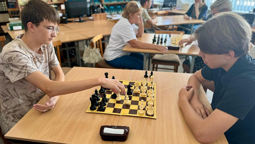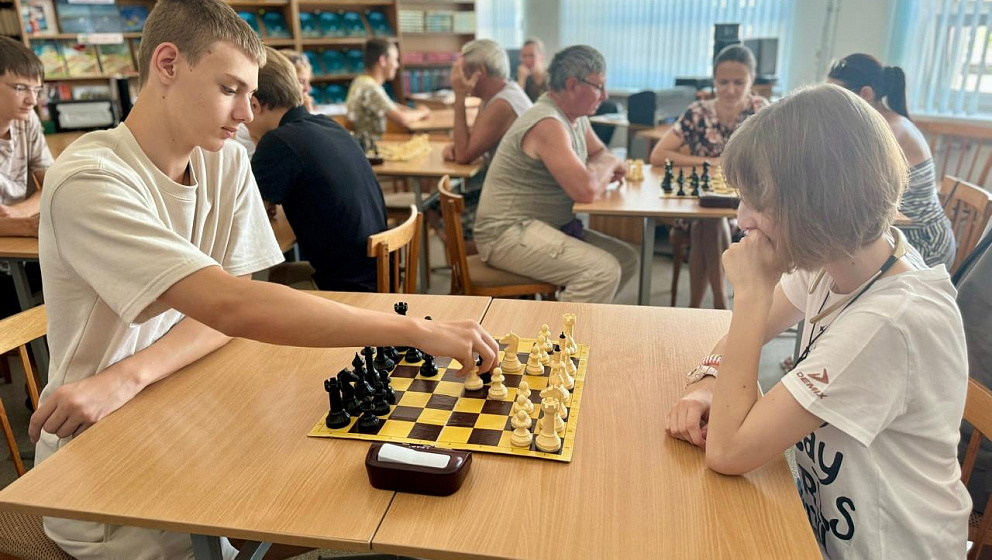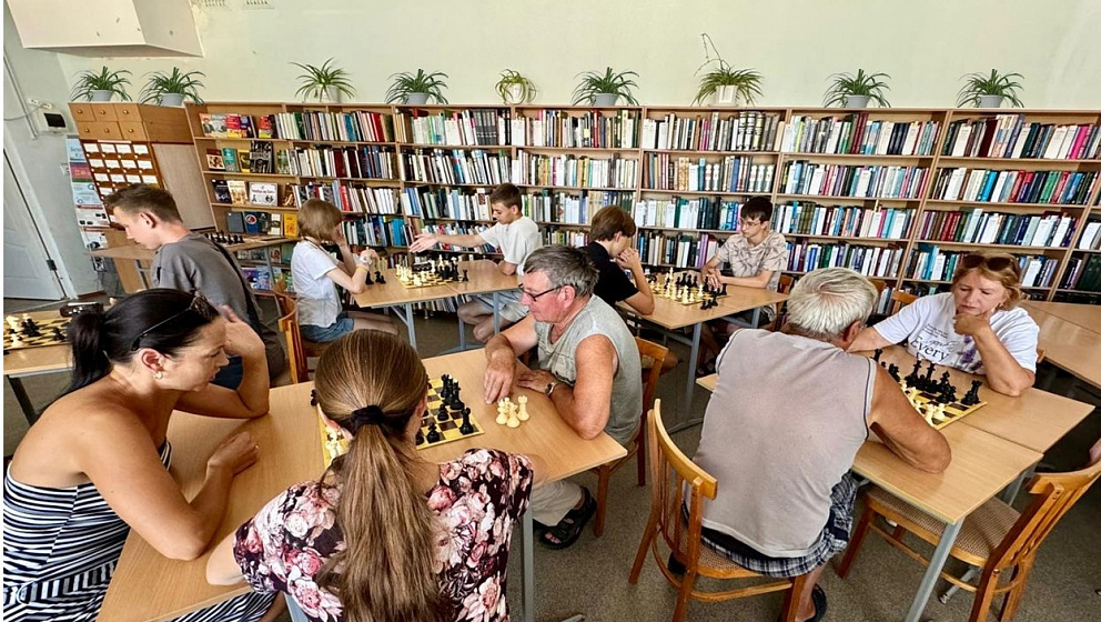 Шахматный турнир в Приморско-Ахтарской районной библиотеке проходил одновременно на шести досках. Игроки разного возраста приветствовали друг друга традиционным спортивным рукопожатием. Поединок был напряженным и интересным, участники показали высокий уровень игры и мастерство.