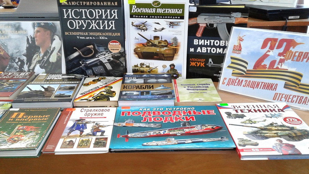 Красочно иллюстрированные книги, представленные на выставке, познакомят читателей с историей военной техники и оружия от самого простейшего до современного военного оснащения.