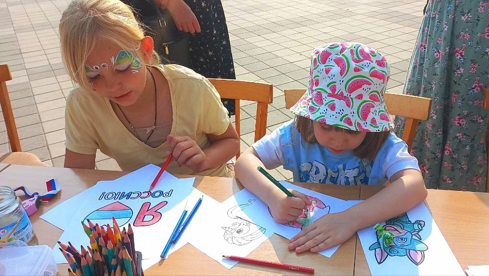 Дополняли творческую атмосферу веселые раскраски с символами праздника и подборка книг об истории России!