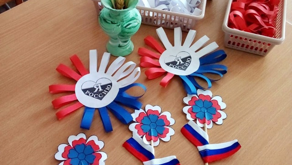 Ребята с азартом вырезали, клеили и создавали своими руками яркие цветы «триколор» из бумаги, символизирующие главные ценности нашей страны.