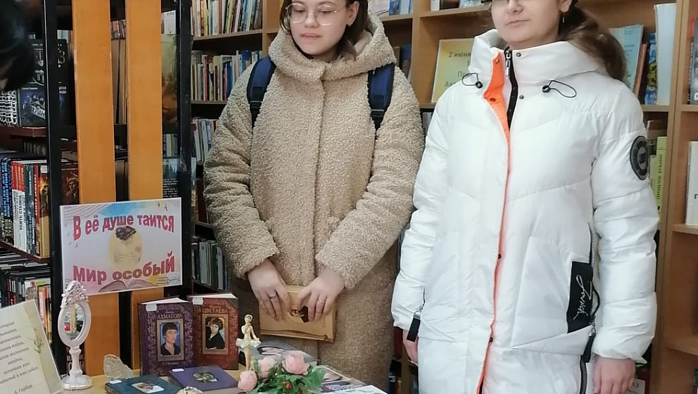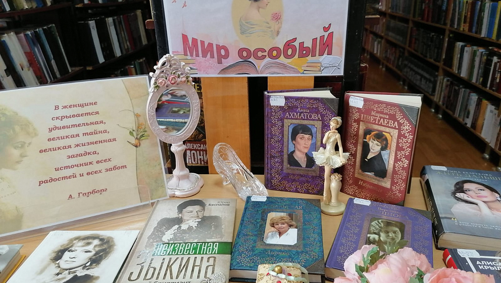 Всех женщин, пришедших в эти дни в библиотеку, мы приглашаем к общению с книгой в руках возле праздничной выставки «В ее душе таится мир особый».