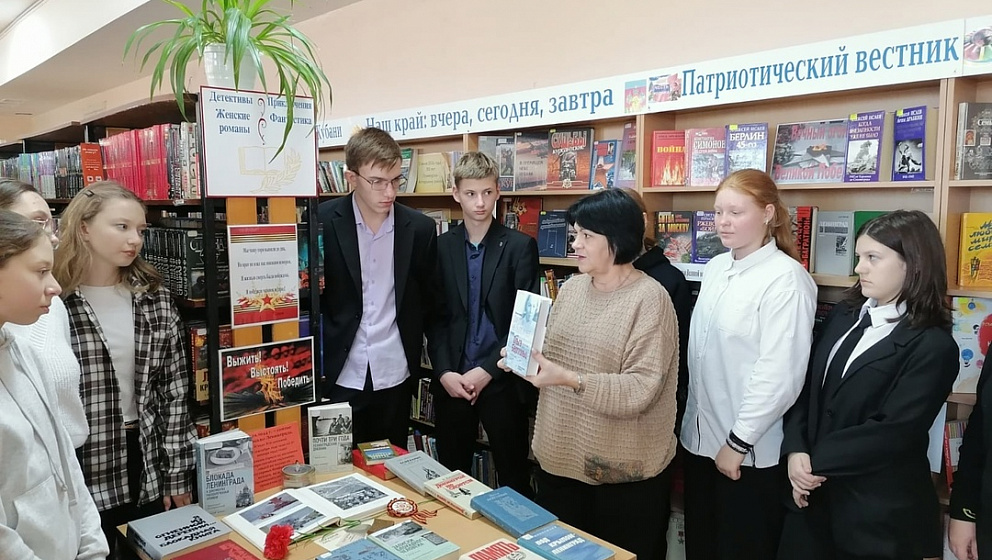 В рамках цикла мероприятий, посвященных освобождению от блокады города Ленинграда 27 января 1944 года, библиотекари провели с учащимися 8 класса СОШ № 3 беседу у выставки под названием «В кольце блокады».