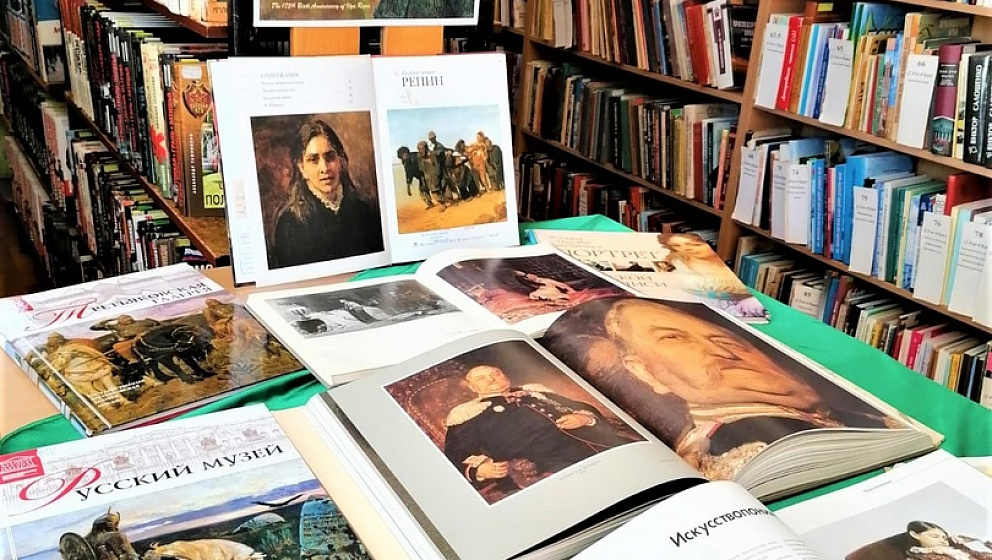 Внимание посетителей сразу привлекает огромный, объемом 500 глянцевых страниц, альбом «Илья Репин», М. «Искусство», 1982 год. Альбом заполнен великолепными репродукциями, с помощью которых читатель может рассмотреть мельчайшие детали великих произведений.