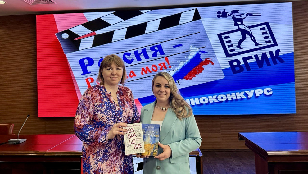Почетную награду директору библиотеки Надежде Слядневой вручил ректор ВГИКа Владимир Малышев. В дополнение к этому, Владимир Сергеевич, будучи автором нескольких книг, подарил библиотеке свои произведения прозы и стихов.