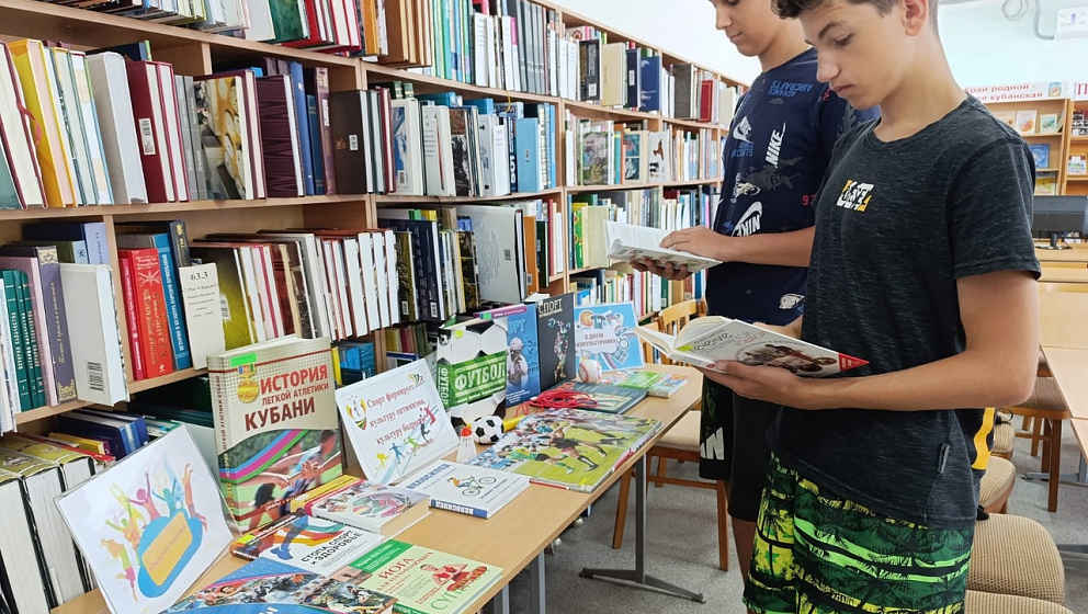 На выставке представлены книги: Е.Тованчева «Кубань спортивная», «Звезды спорта Кубани», «История легкой атлетики Кубани:1912-2012, цифры, факты», энциклопедия «Спорт.Мировые достижения», Ю.В. Попова «Жизнь выдающихся людей. Знаменитые спортсмены», Д.Татарского «Мировой спорт в инфографике», Д. Голдблатт «Футбол: самая полная энциклопедия».