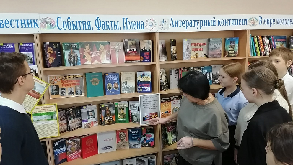 Вниманию учащихся также была представлена тематическая подборка книг кубанских историков и писателей из фонда библиотеки, рассказывающих о событиях военных лет на Кубани, а также специальная подборка литературы о сегодняшних героях СВО.
