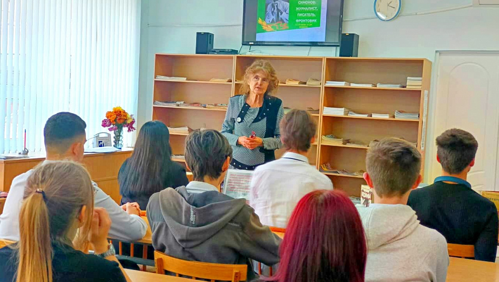 Рассказывая о выдающемся писателе, специалисты библиотеки концентрировали внимание учащихся на том, что Константин Симонов говорил о Великой Отечественной войне не по обязанности, а по глубокой внутренней потребности, в течение всей жизни не переставая думать и писать о людских судьбах, связанных с войной и военной службой.