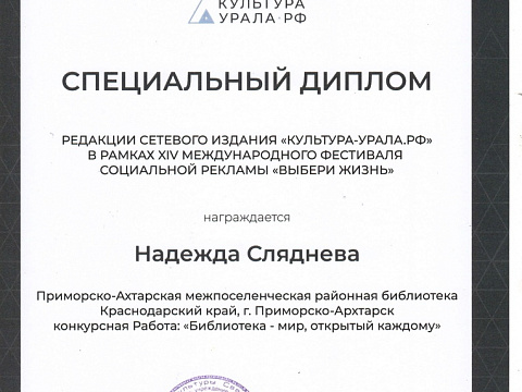 . Поздравление коллектива районной библиотеки от Совета молодежи при главе муниципального образования Приморско-Ахтарский район