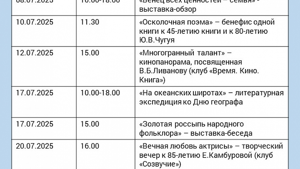 Афиша на июль