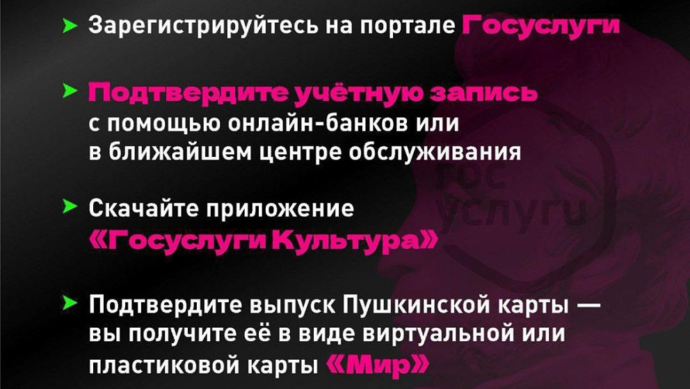 Скорее забирайте карту здесь https://culture.gosuslugi.ru/