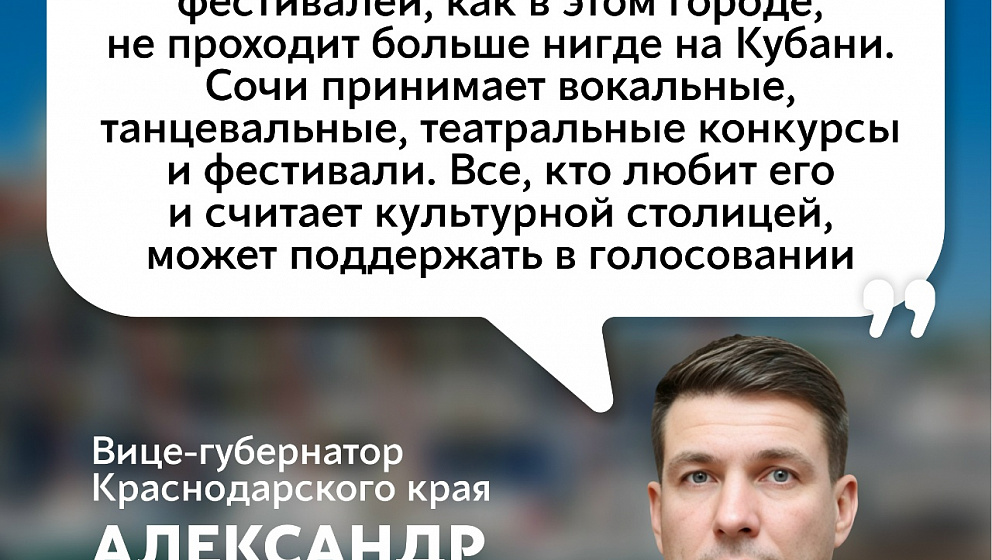 Сегодня Сочи — не только море и горы, но и богатая культурная среда. На сценах города выступают лучшие коллективы, а афиша насыщена событиями на любой вкус.