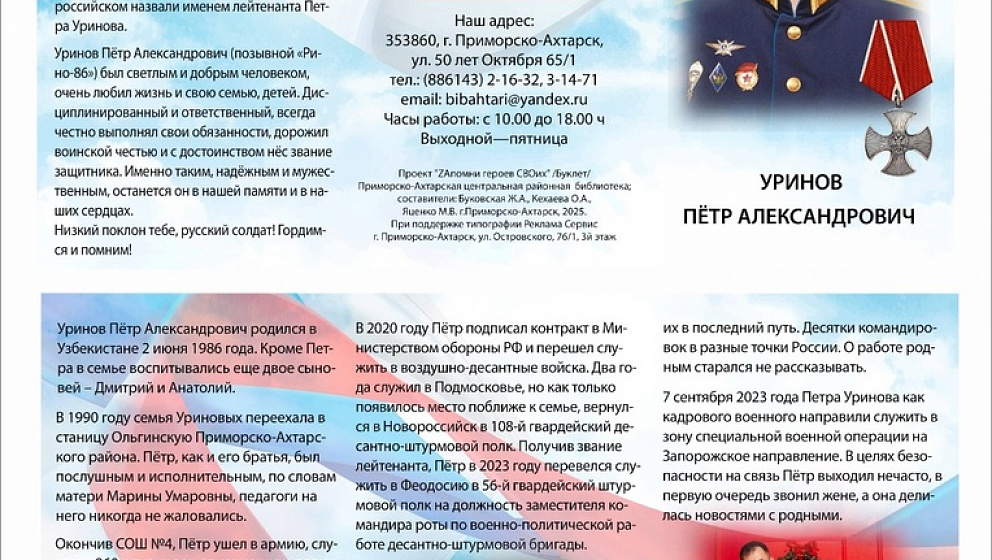 Центральная районная библиотека совместно с Государственным фондом «Защитники Отечества» выпустила буклеты в рамках проекта «ZAпомни героев СВОих» - о наших земляках - героях СВО