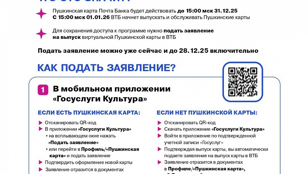 Успейте подать заявление на выпуск Пушкинской карты в ВТБ!