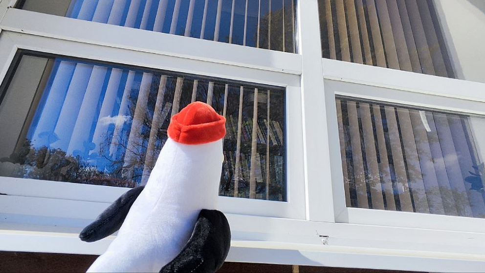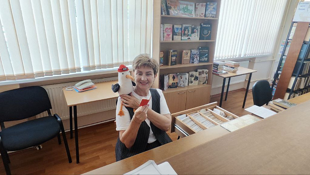 Однажды, пролетая над высоким, красивым зданием, он увидел в окно стеллажи, полные книг. Заинтересованный, Ахтарчик решил заглянуть туда. Это была Районная библиотека — идеальное место для его приключений и получения новых знаний! Познакомившись с библиотекарями, он выяснил, что на эмблеме библиотеки (вот так совпадение!) тоже изображена чайка. Так Ахтарчик стал талисманом Районной библиотеки. Наш образованный друг всегда придет на помощь читателям и подскажет интересную книгу по вашему вкусу!