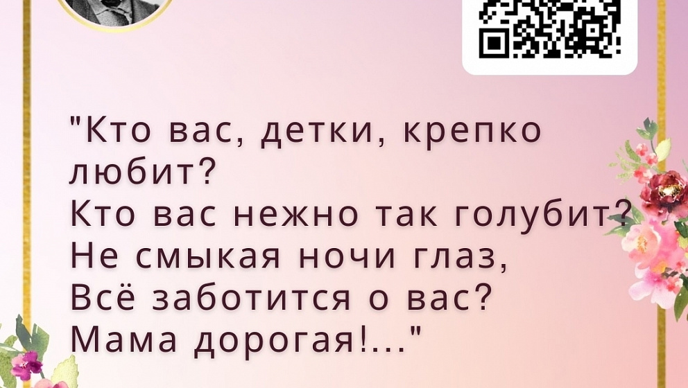 Самые пронзительные стихи о маме читайте в карточках. Полностью стихи можно прочитать на портале Культура.рф, сканируя QR-код на карточке приложением вашего смартфона.
