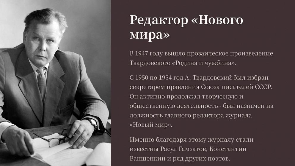 21 июня исполняется 115 лет со дня рождения Александра Трифоновича Твардовского - выдающегося советского поэта, прозаика и военного корреспондента, лауреата Сталинской и Ленинской премий.