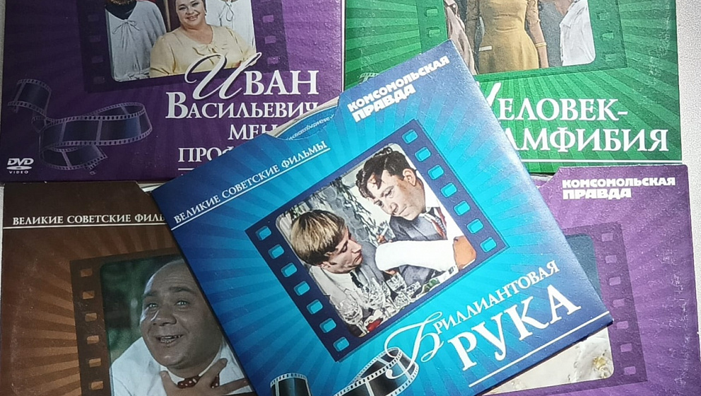 Помимо аудио-версий в библиотечном фонде есть видеоформат. Серия «Великие советские фильмы» на DVD -дисках найдет своего любителя.