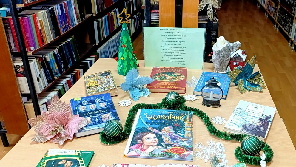 Дорогие друзья! Чтобы создать волшебное настроение, мы оформили для вас сразу две праздничные выставки: на абонементе и в читальном зале библиотеки.