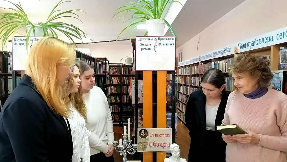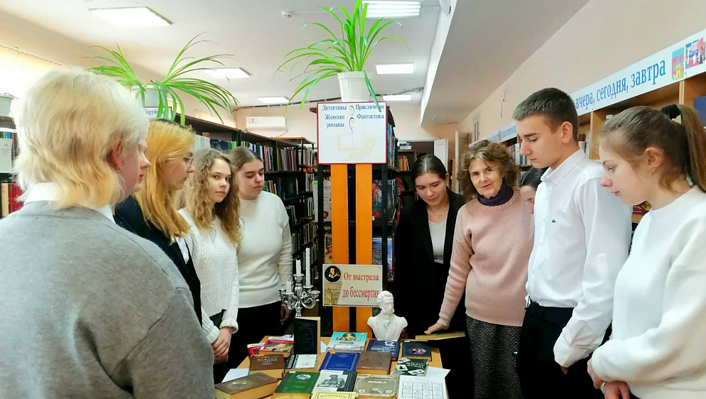 К этому дню специалисты библиотеки подготовили выставку-посвящение «От выстрела до бессмертия», у которой провели беседу с учащимися 9 и 10 классов СОШ № 2.