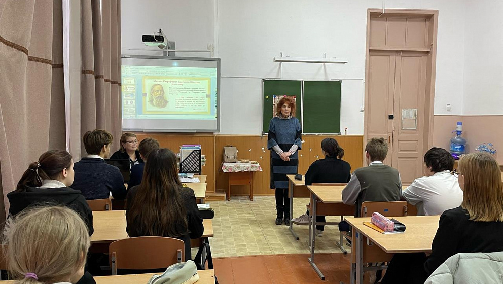 Специалист библиотеки Базилевская Т.Ю., рассказывая старшеклассникам об основных направлениях его творчества, акцентировала внимание на том, что сатира Щедрина глубоко национальна. Правдивый и суровый автор, он был преемником и продолжателем дела Пушкина, Грибоедова и Гоголя.