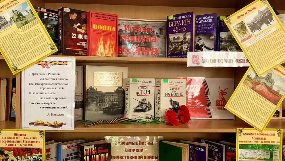 Вниманию читателей были представлены книги, рассказывающие о событиях Великой Отечественной Войны. Это научно-популярная и художественная литература известных историков и писателей.
