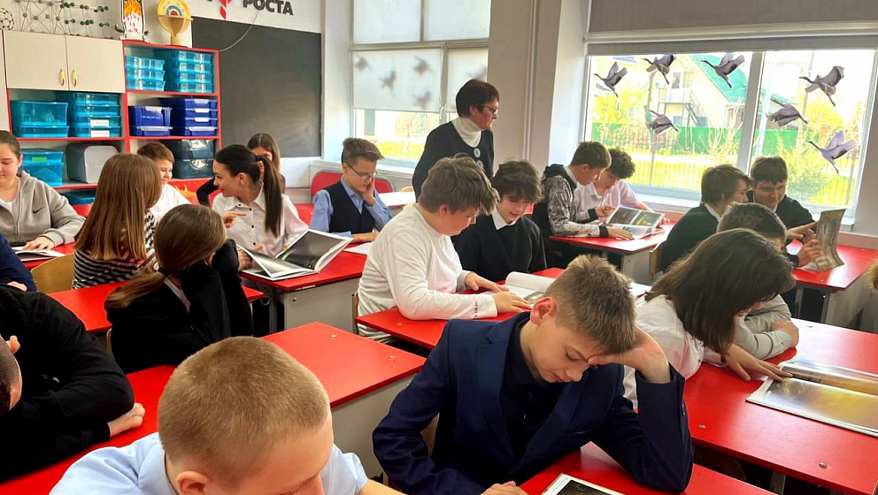 Для учащихся СОШ №13 прошло мероприятие «И мягко кисть скользит, соединяя времена», подготовленной центральной районной библиотекой.