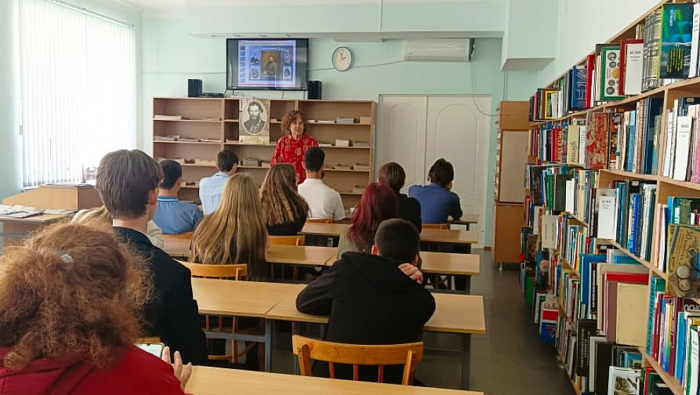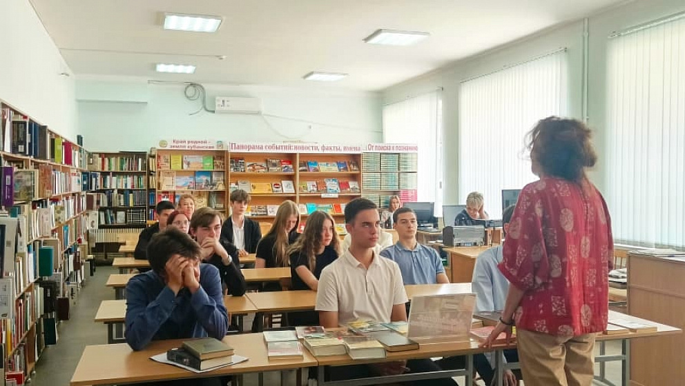 Вместе со школьниками библиотекари подробно перелистывали биографию выдающегося писателя. Останавливались на фактах посещения Толстым Кубани, очарованностью им нашим краем. Акцентировали внимание на участие Л.Н. Толстого в 1855-1856 г. в Крымской войне, его «Севастопольских рассказах».