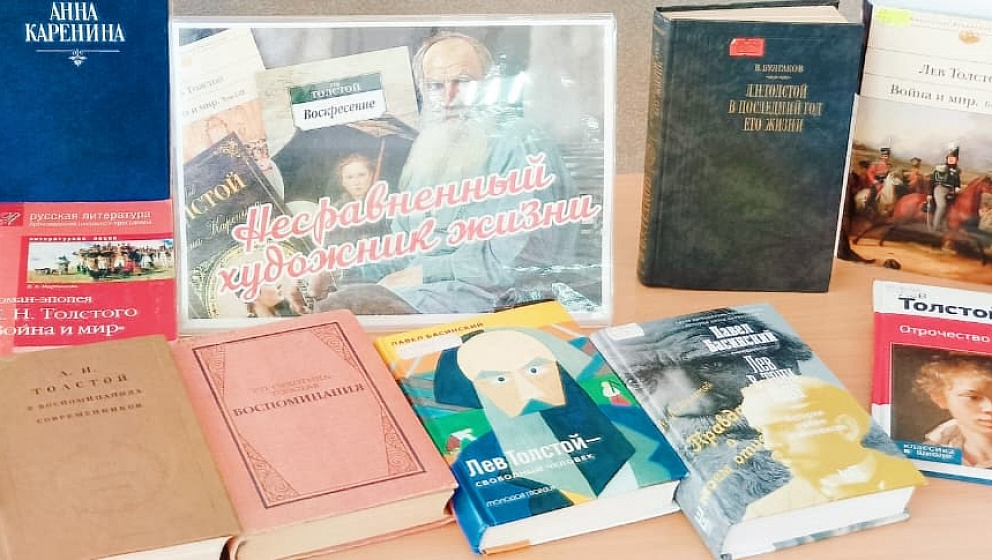 Рассказ о жизни и творчестве великого прозаика сопровождался видеопрезентацией. Вниманию молодежи была также предложена выставка, содержащая романы, повести, очерки, драмы, автобиографические религиозно-философские труды Л. Н. Толстого, а также биографическую литературу.