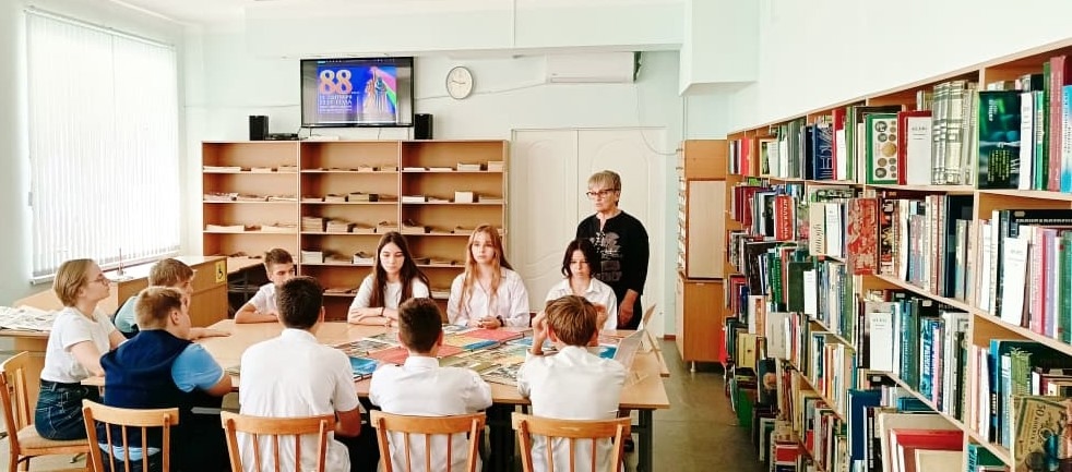 К этому событию, в читальном зале районной библиотеки, для учащихся МАОУ СОШ № 22, прошло мероприятие, в ходе которого ребятам рассказали и показали документальные видеоматериалы об истории образования Краснодарского края.