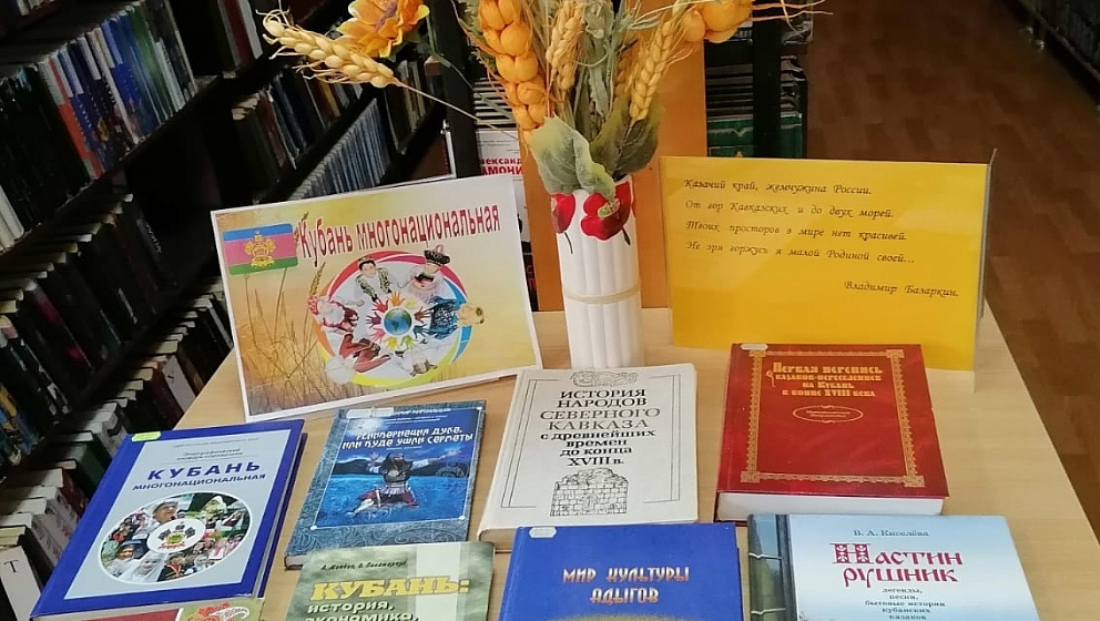 В рамках акции ко Дню образования Краснодарского края на абонементе представлена книжная выставка «Кубань многонациональная». Она знакомит читателей с историей и культурой народов, проживающих в крае, межнациональных отношениях и развитием национальных культур.